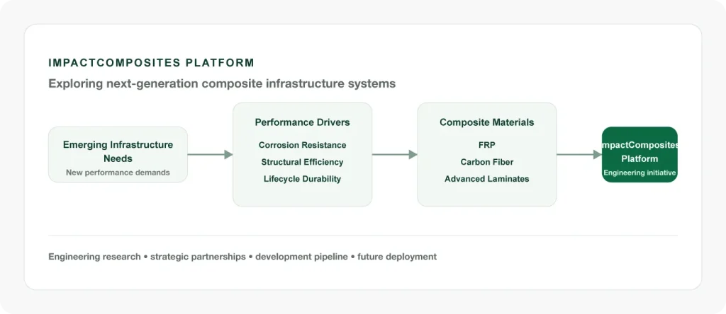 Through ImpactComposites, we are expanding that expertise to evaluate new composite infrastructure solutions capable of supporting emerging industrial systems requiring corrosion resistance, structural efficiency, and long-term reliability.
